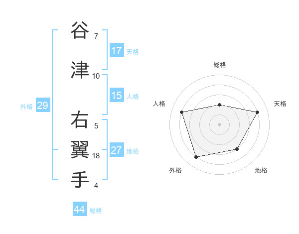 谷津 右翼手さんを姓名の画数から五運を鑑定