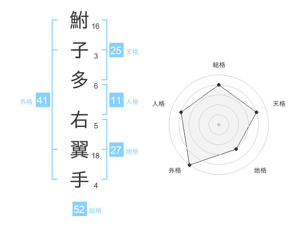 鮒子多 右翼手さんの総格は52画の4点!