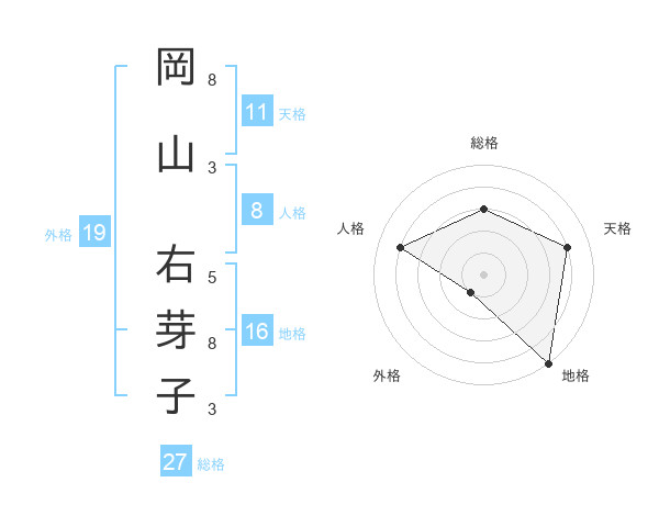岡山 右芽子さんを姓名の画数から五運を鑑定