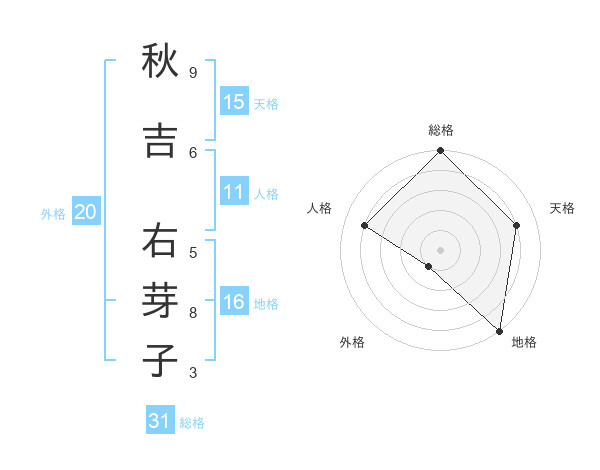 秋吉 右芽子さんを姓名の画数から五運を鑑定