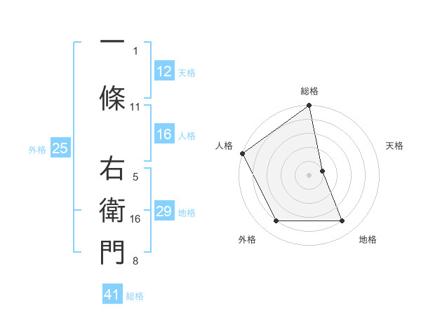 一條 右衛門さんを姓名の画数から五運を鑑定