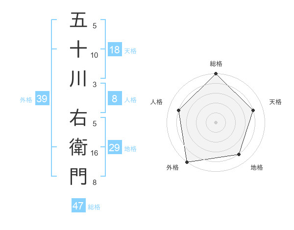 五十川 右衛門さんを姓名の画数から五運を鑑定