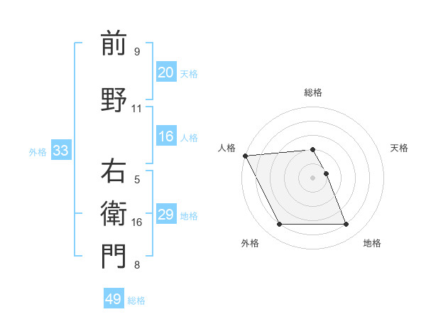前野 右衛門さんを姓名の画数から五運を鑑定