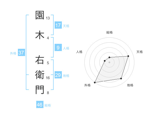 園木 右衛門さんを姓名の画数から五運を鑑定