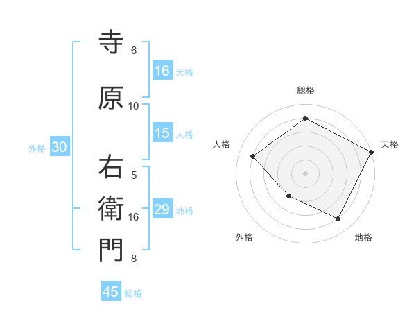 寺原 右衛門さんの総格は45画の4点!