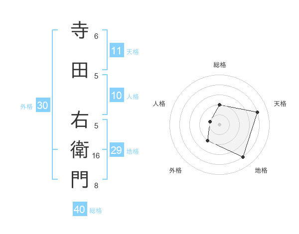 寺田 右衛門さんの総格は40画の2点!