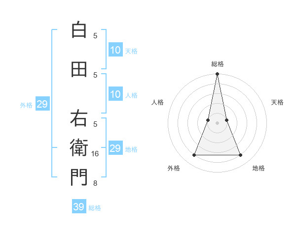 白田 右衛門さんの総格は39画の5点!