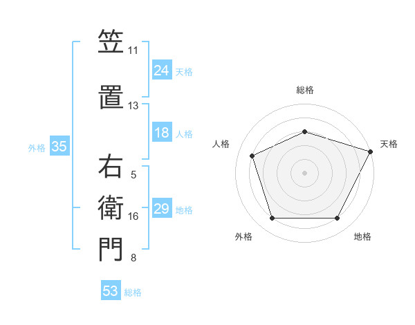 笠置 右衛門さんを姓名の画数から五運を鑑定