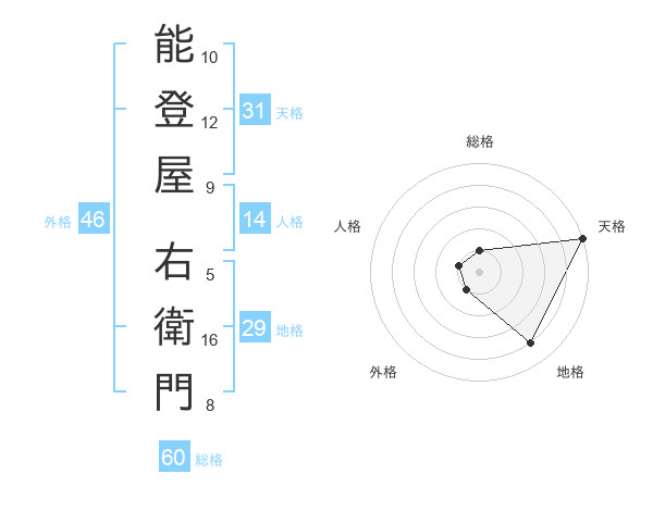 能登屋 右衛門さんの総格は60画の1点!