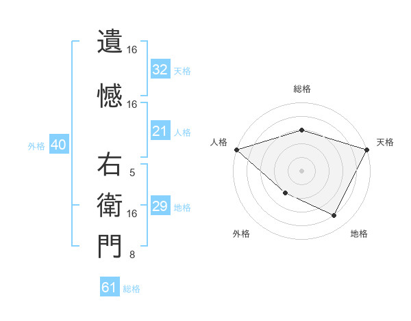 遺憾 右衛門さんを姓名の画数から五運を鑑定