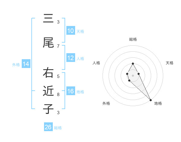 三尾 右近子さんを姓名の画数から五運を鑑定