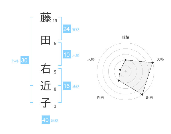藤田 右近子さんを姓名の画数から五運を鑑定