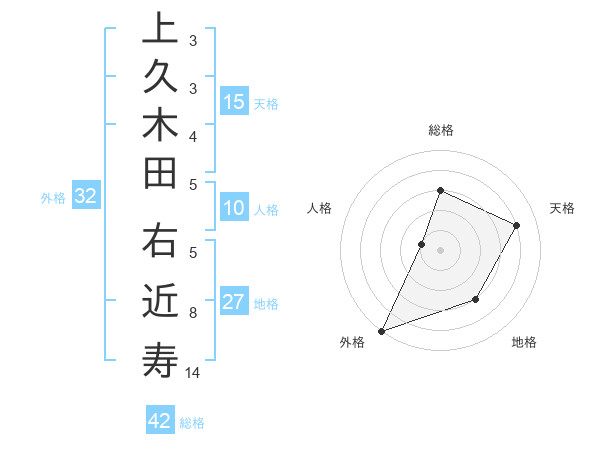 上久木田 右近寿さんを姓名の画数から五運を鑑定
