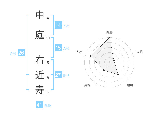 中庭 右近寿さんを姓名の画数から五運を鑑定