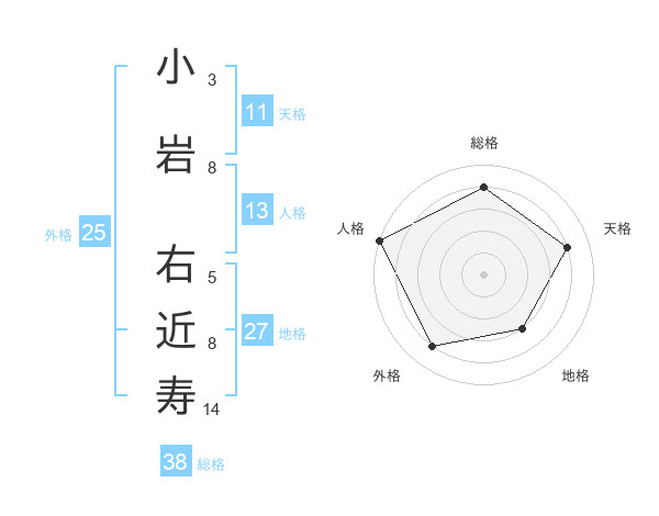 小岩 右近寿さんの総格は38画の4点!