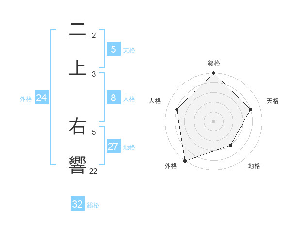 二上 右響さんの総格は32画の5点!