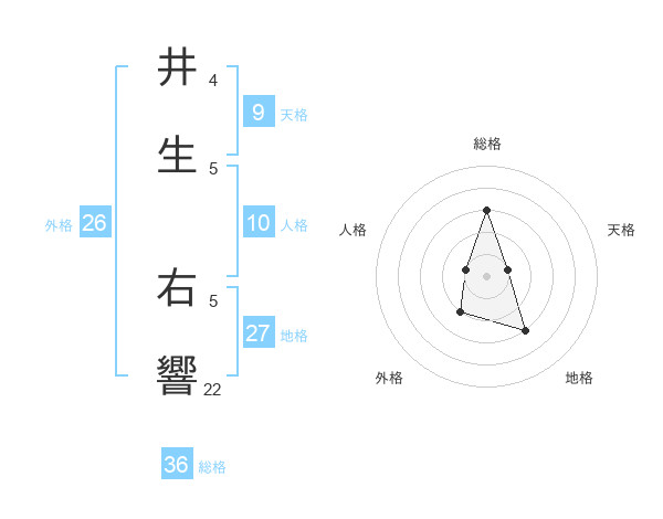 井生 右響さんの総格は36画の3点!