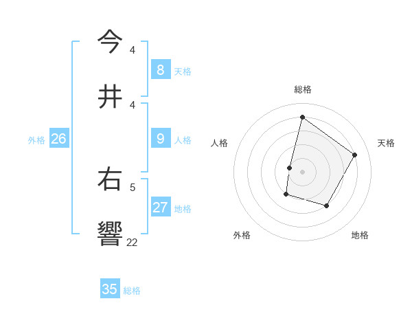 今井 右響さんの天格は8画の4点!