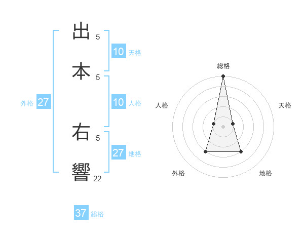 出本 右響さんの総格は37画の5点!