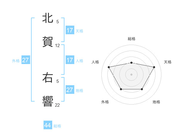 北賀 右響さんの天格は17画の4点!
