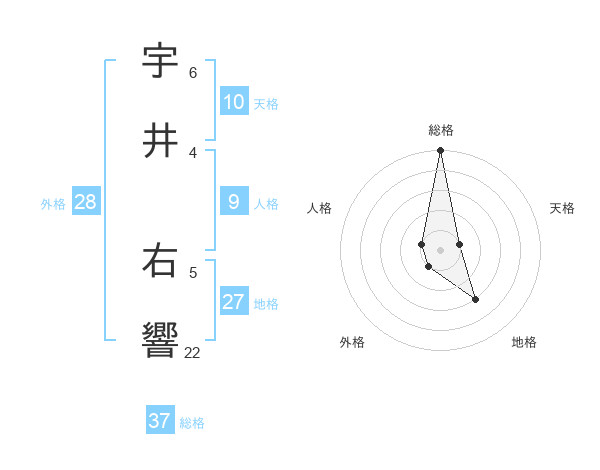 宇井 右響さんの総格は37画の5点!