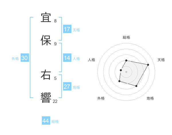 宜保 右響さんの天格は17画の4点!