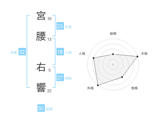 宮腰 右響さんを姓名の画数から五運を鑑定