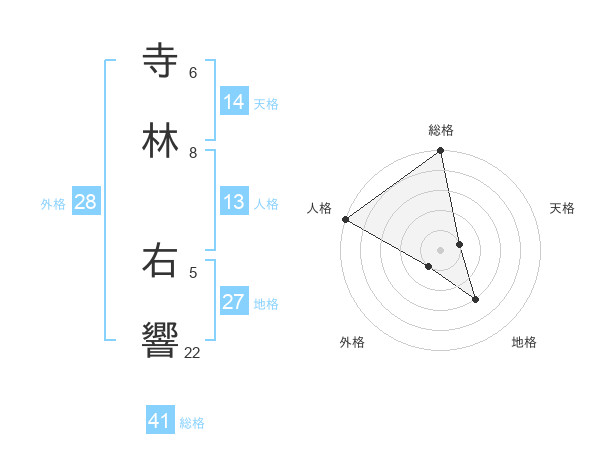 寺林 右響さんの総格は41画の5点!