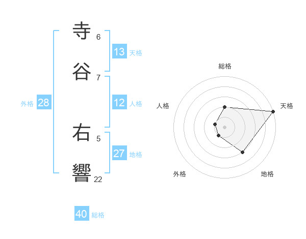 寺谷 右響さんを姓名の画数から五運を鑑定