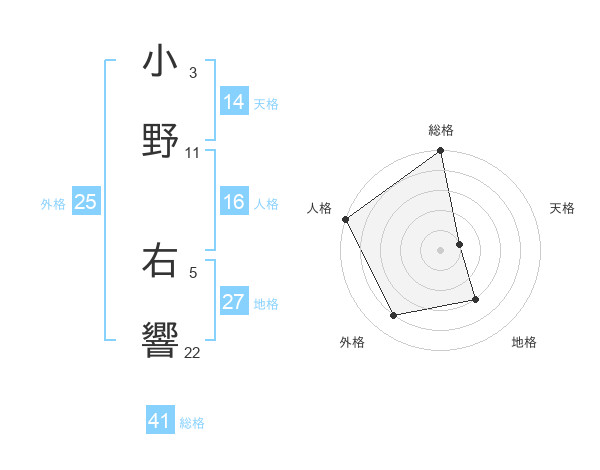 小野 右響さんの総格は41画の5点!