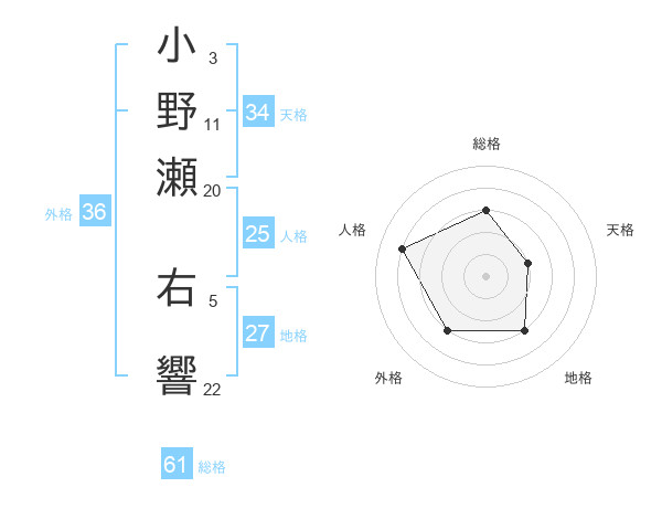小野瀬 右響さんを姓名の画数から五運を鑑定