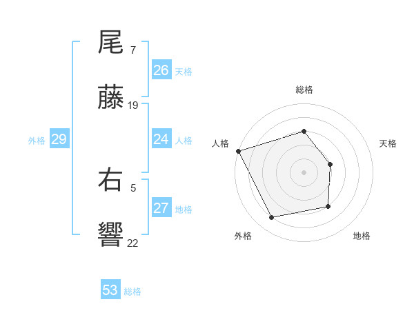 尾藤 右響さんを姓名の画数から五運を鑑定