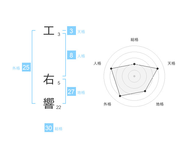工 右響さんの総格は30画の2点!