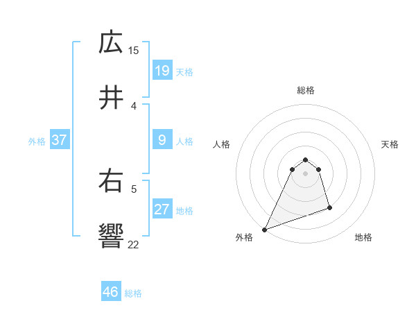 広井 右響さんの外格は37画の5点!