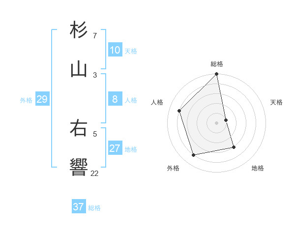 杉山 右響さんの総格は37画の5点!