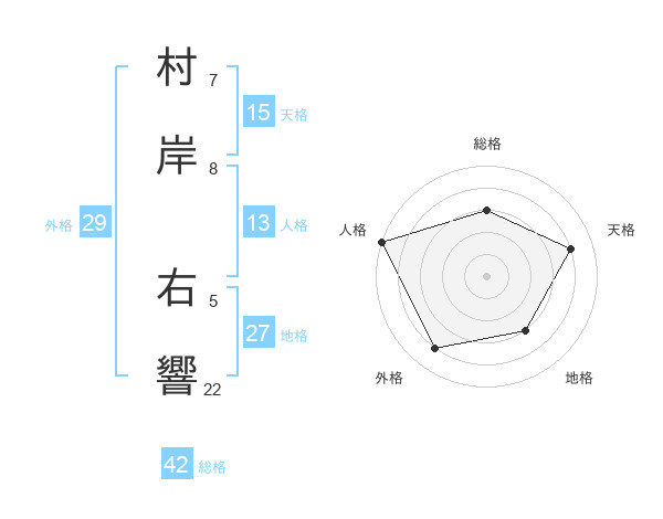 村岸 右響さんの総格は42画の3点!