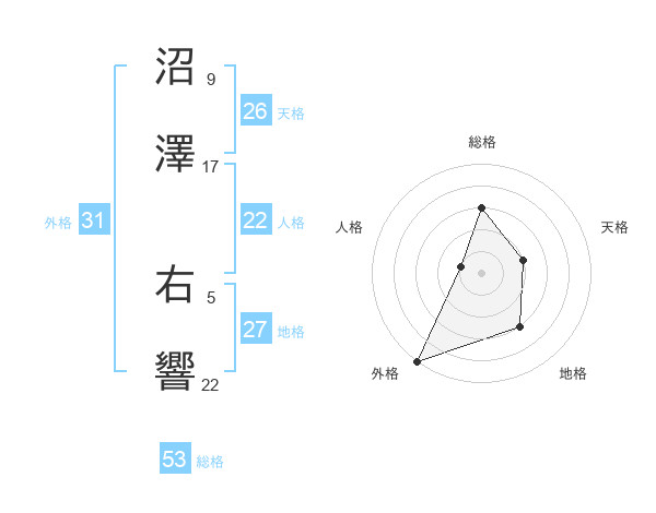 沼澤 右響さんの外格は31画の5点!