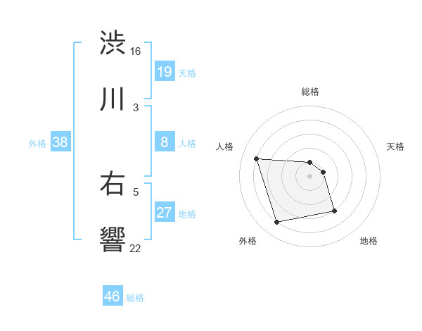 渋川 右響さんの外格は38画の4点!