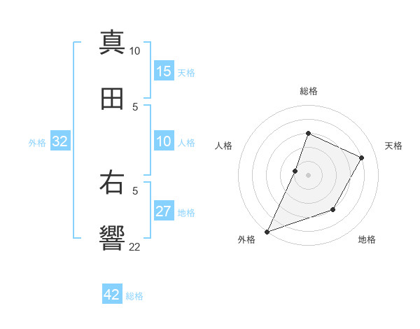 真田 右響さんの総格は42画の3点!