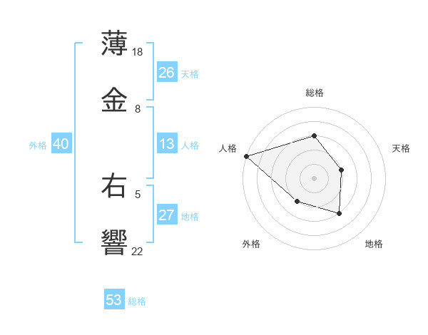 薄金 右響さんの天格は26画の2点!