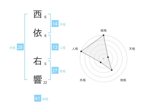 西依 右響さんの総格は41画の5点!