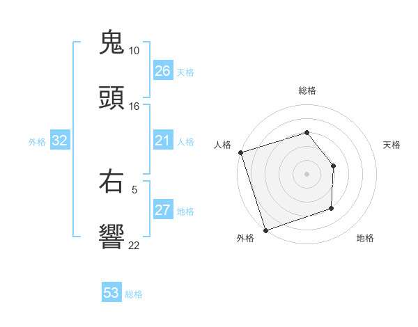 鬼頭 右響さんを姓名の画数から五運を鑑定