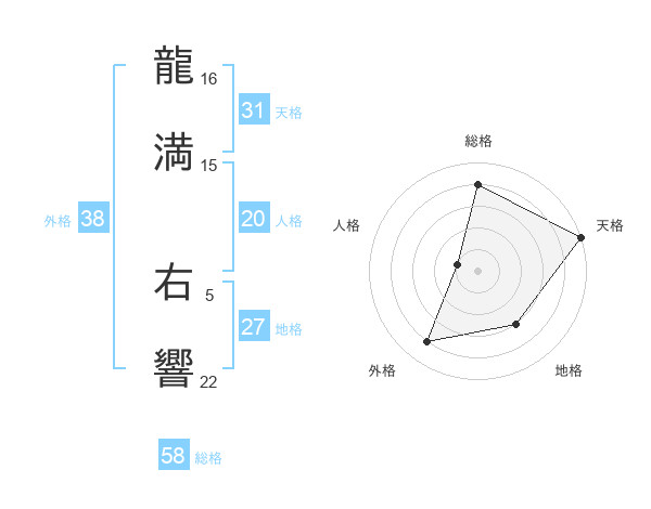 龍満 右響さんの総格は58画の4点!
