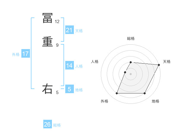冨重 右さんの天格は21画の5点!