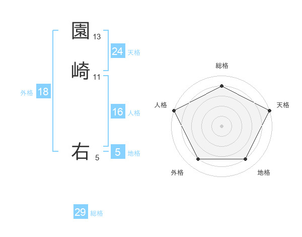 園崎 右さんの総格は29画の4点!