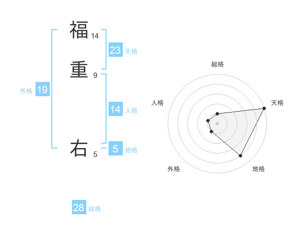 福重 右さんの天格は23画の5点!
