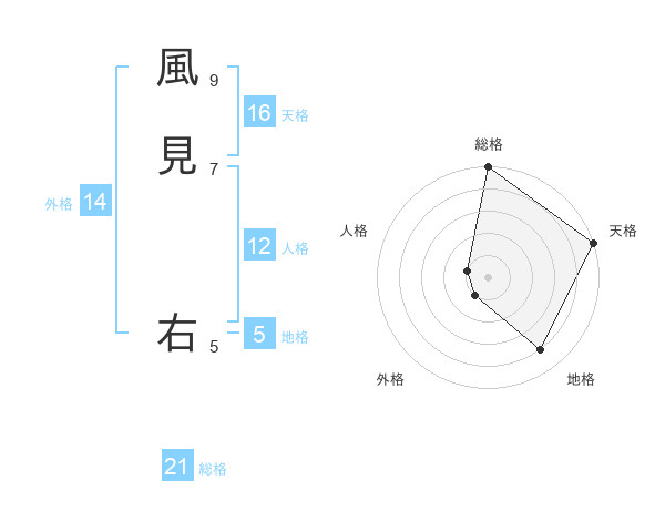 風見 右さんの総格は21画の5点!
