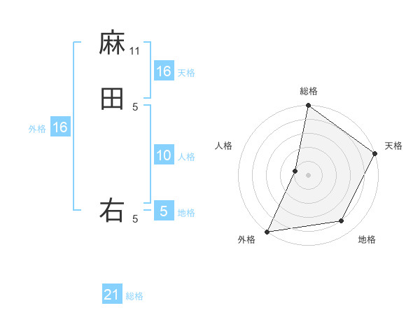 麻田 右さんの総格は21画の5点!