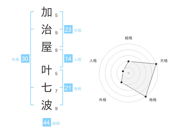 加治屋 叶七波さんの天格は23画の5点