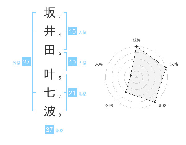 坂井田 叶七波さんの総格は37画の5点!